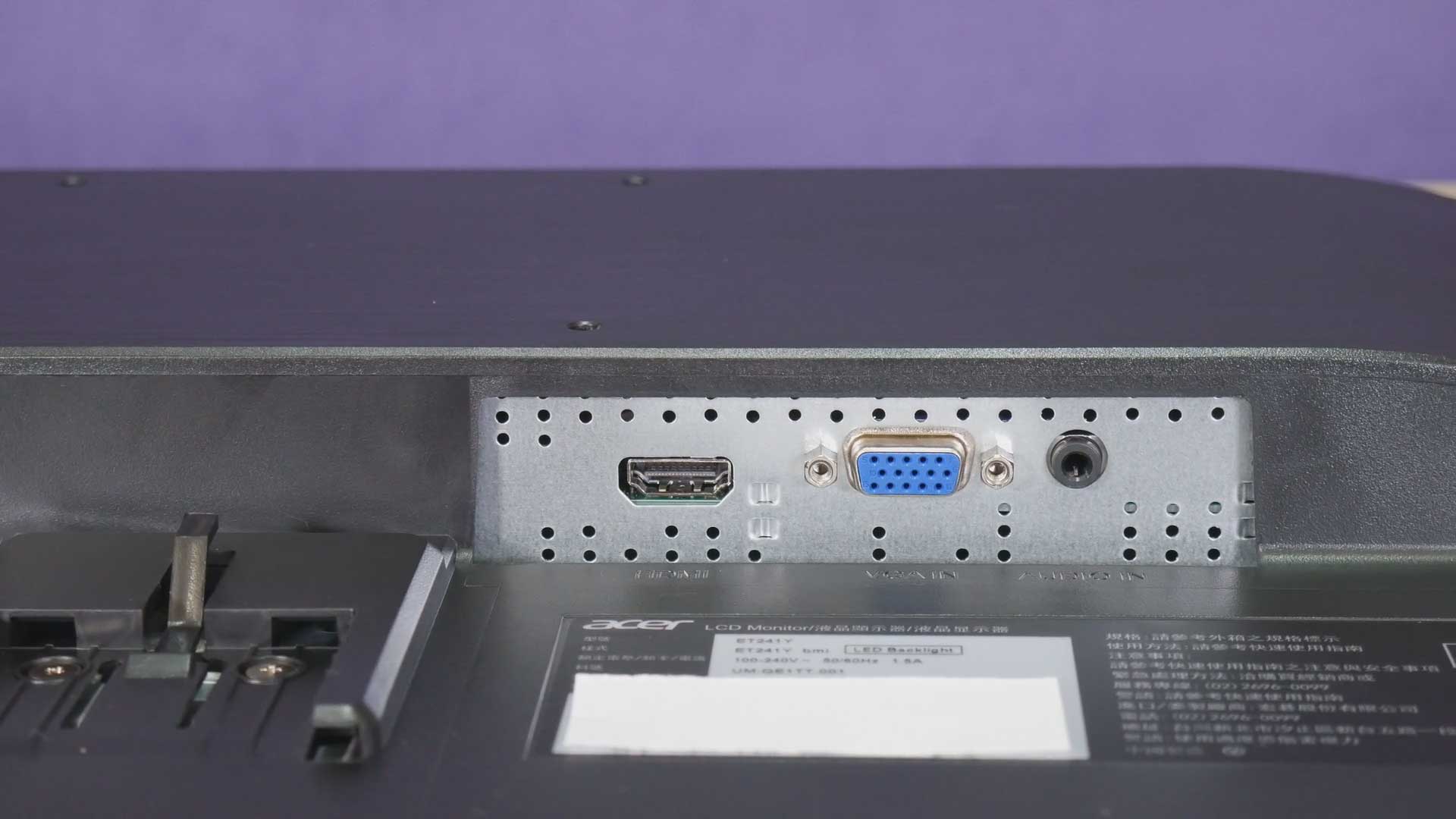 Looking at the Acer ET241Y’s connectors, there’s an HDMI and VGA. Wait, what’s that? It’s an Audio In jack. That’s right, this monitor has built-in speakers. Although I’d counter that actually having an audio out may be more useful. Any added functionality at this price point is appreciated though.