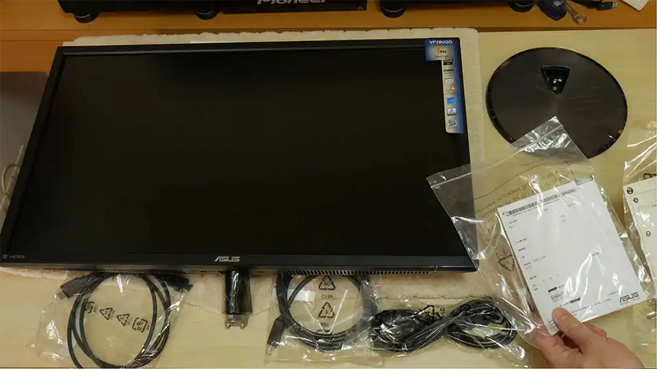 This is the Asus VP28U and it’s a 16:9 aspect 4K monitor priced at $300 dollars on AmazonUS, and 8990nt here in Taiwan. It’s a 28 inch TN panel with the usual ASUS style and looks. The standout features are the large 28 inch 3840 by 2160 screen with flicker-free and Low Blue Light technology to ensure comfort when viewing, and thanks to the TN technology, 1 millisecond response times.