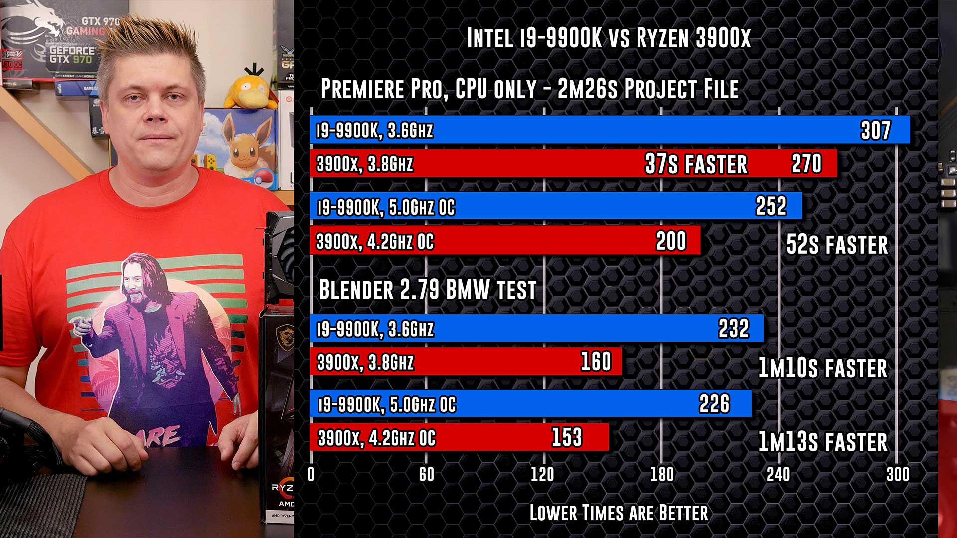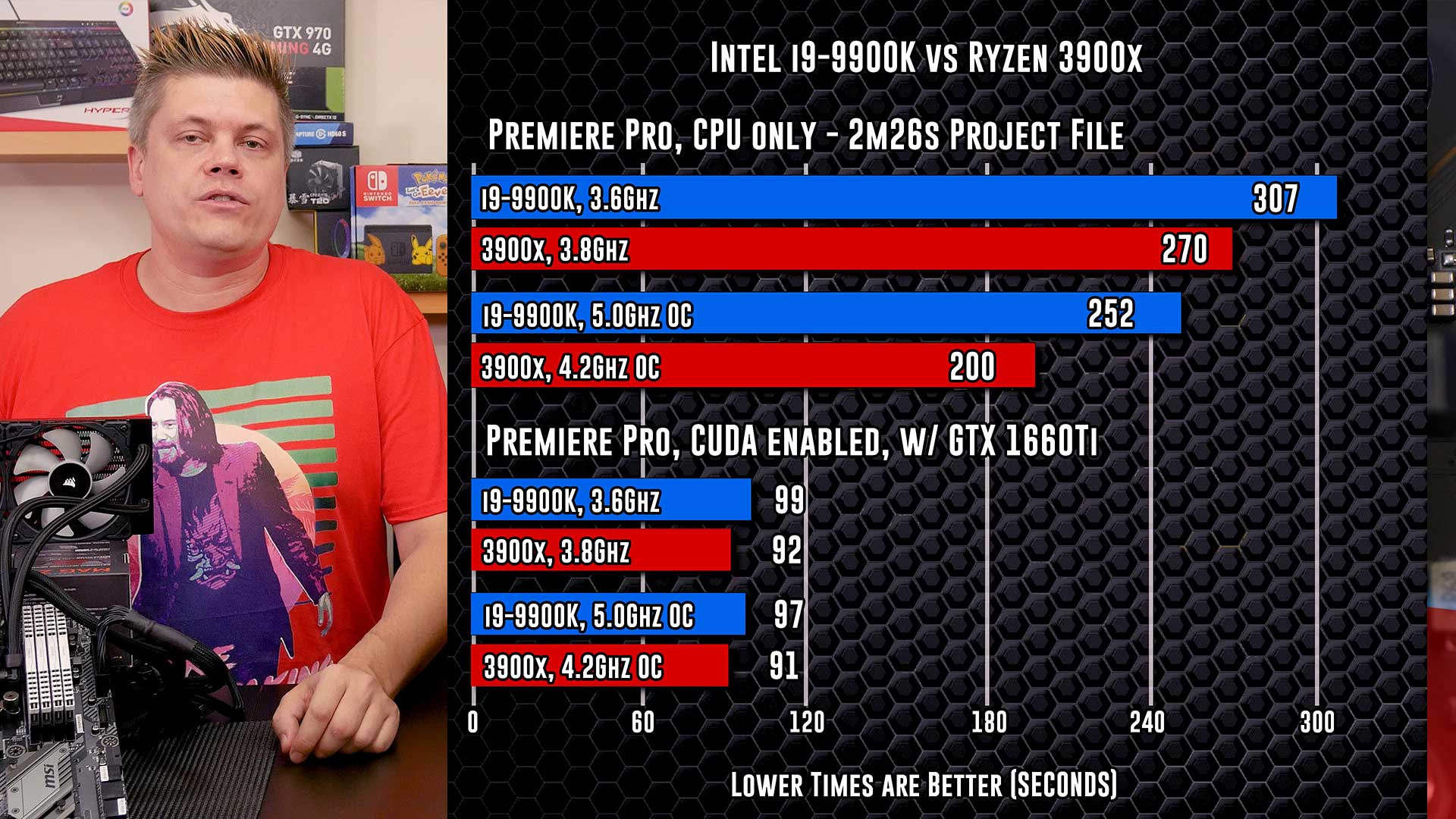 Hey everyone, what’s up. So, what’s the hands down king for Premiere? How about Blender? Due to producing a Ryzen overclocking Pro Cast episode for MSI, I got my hands on a crisp new Ryzen AMD 3900x setup to compare against our Intel i9-9900K we use for video production, we’ll find out who’s best this time.