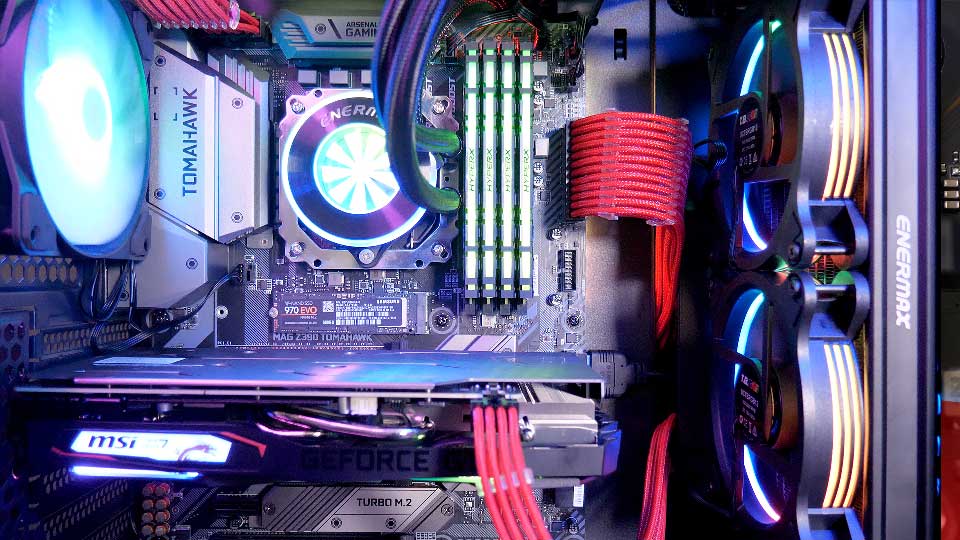 For the Intel build we paired the Intel 9900K with an MSI MAG Z390 Tomahawk, Samsung 970 Evo 500 gig NVMe m.2 and 64 gigs of Corsair Vengeance DDR4 3200 with base clock 2133 megahertz. Ryzen 3900X we had on a MSI MEG X570 ACE, with XPG 8200 PRO 256 gig NVMe m.2, with the performance on-par with the Samsung drive, and 32 gigs of Corsair Dominator Platinum RGB 3000, also with a base clock of 2133 megahertz.