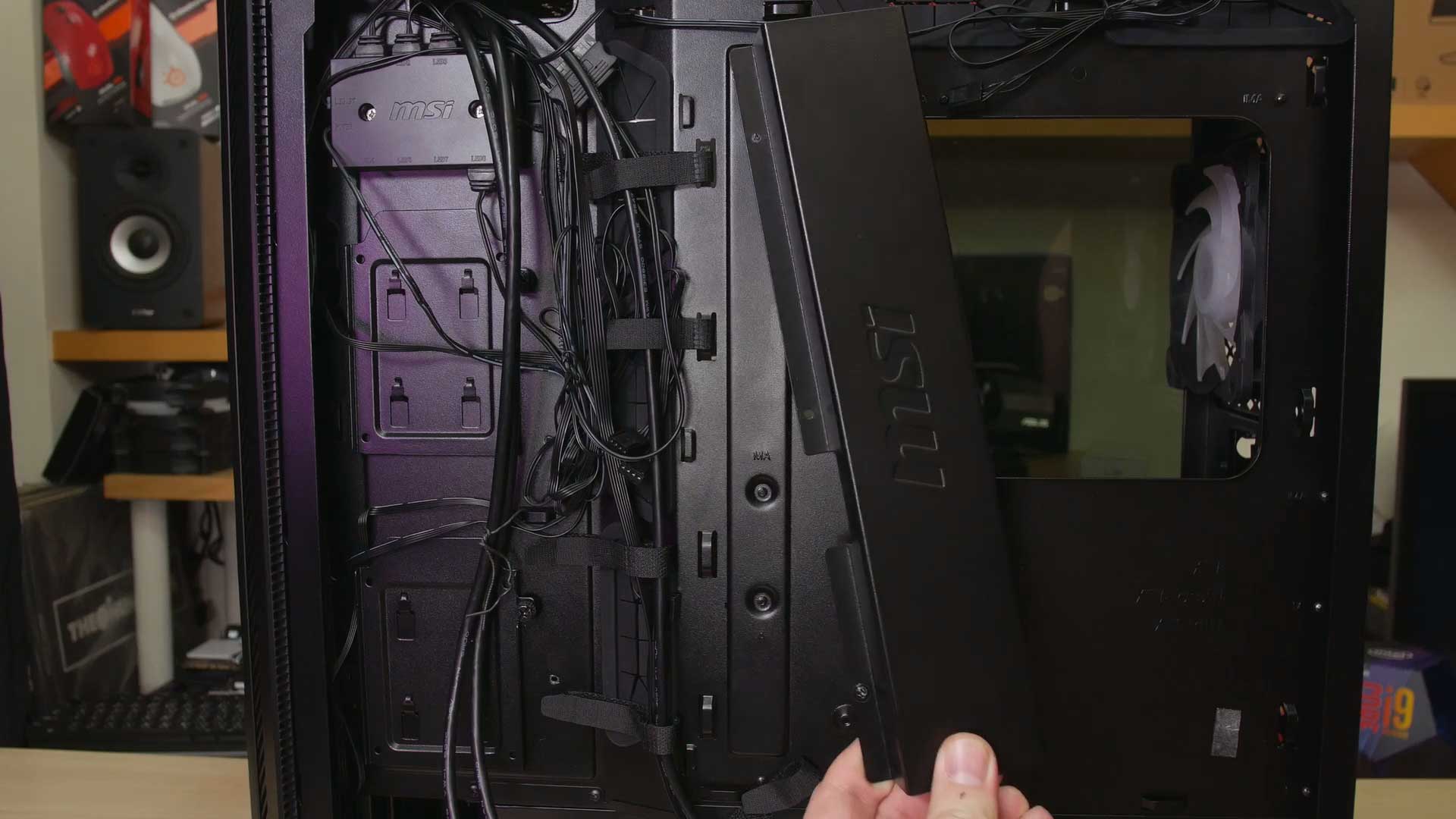 There are a couple of points- with power and RGB wiring hooked up, it’s tricky to put the MSI stamped metal cover back on, you’ll need patience. An extra centimeter or a pressed out square in the side panel would have made replacing the side easier.