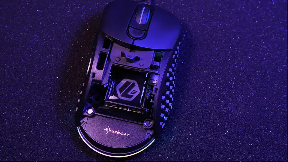 And the Sharkoon Light2 200 has a modular design which you can personalize, you can change elements on the mouse body to suit your needs. The magnetically attached top honeycomb can be easily removed and swapped with a closed-type 3 gram alternative. The detachable top makes cleaning a breeze, too.