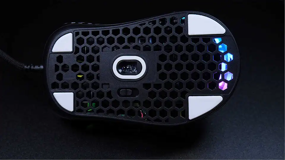 A honeycomb lattice takes the place of traditional top, side and bottom structure, shaving down the weight and reducing the structure to the bare-bones. This is the first ultra light weight mouse we’ve tested, coming in at only 62 grams. It’s super light under your fingers and there’s no resistance or fatigue from long gaming sessions.
