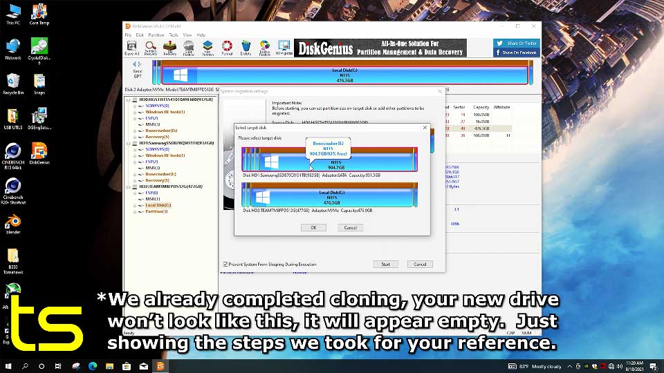 Now we could just slap it in there and go through the hassle of a fresh windows install. But what if there was an easy way to migrate your system over? We did a bit of research and heard that a program called DiskGenius was easy to use, and we saw user reports of success migrating hard drives over to SSDs. And it worked for us also.