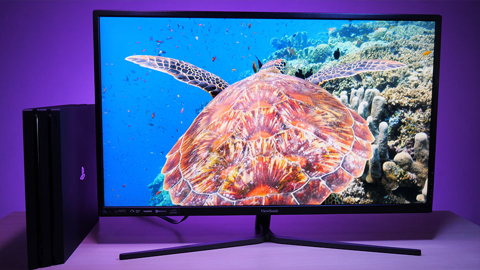 So the ViewSonic VX3211-4K has pretty decent color and brightness, and the picture is sharp and usable, and we tested it with PS4 Pro, and it looked good there also, and HDR showed some nice color and highlight differences, and it should work fine with PS5 and XBox Series X.