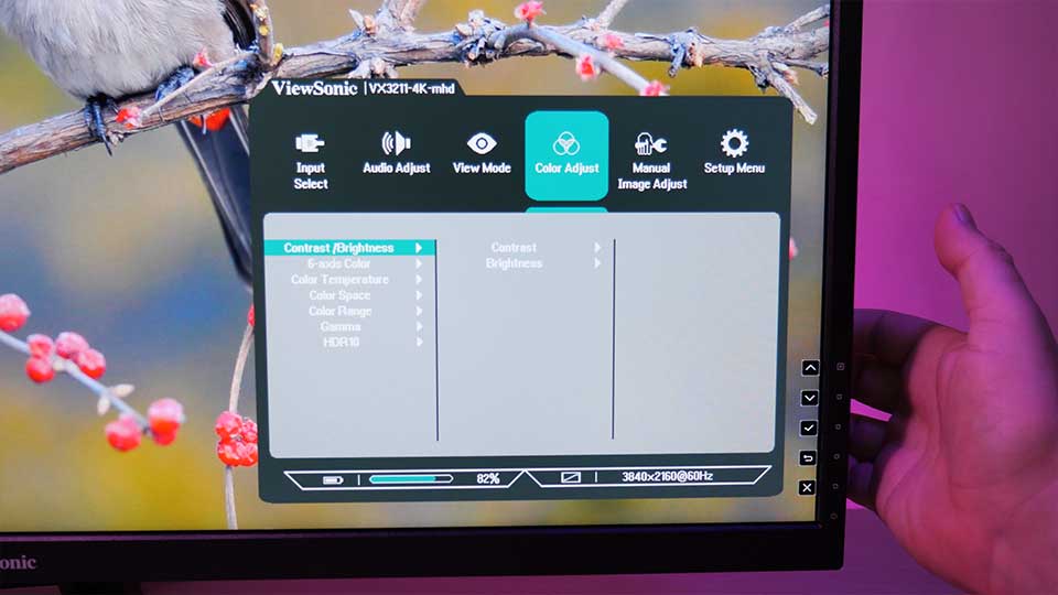 Menu control on the ViewSonic VX3211 4K monitor