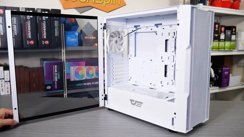 The darkFlash DK431 comes in black, or white, which we have here, however availability and pricing is different depending on your country. We’ll throw what we can find up here, it goes for about $130 dollars in the US. but it’s on sale in Taiwan, where we picked it up for just 1800nt, with black cheaper by 100nt.