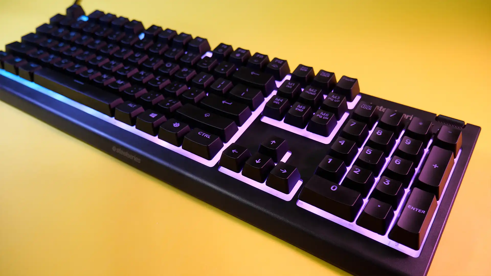 For $50 bucks US or less, it’s cheap, but the SteelSeries Apex 3 delivers a lot. Its water resistance, quiet keys, customizable RGB, wrist rest and software integration is a pretty good bundle. The construction is solid and the typing experience is snappy and comfortable, and it has easily customizable RGB, media keys and macro functionality plus user-friendly software integration.