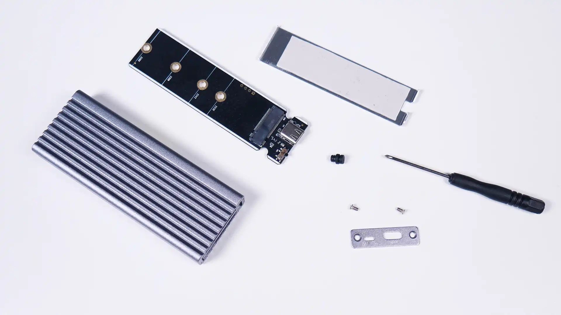 A quick rundown- The Vantec NVMe 10G enclosure is sturdy but setup is fiddly, 9 pieces including the SSD, but the thermal pad does stick to the internal heatsink. The USB-C port feels slightly loose due to the PCB’s slide-in design. It’s smaller than the faster enclosure but slow, getting 726 and 610 Megs-a-second read/write with a 10G port, and 951 and 683 read/write with a 20G port.